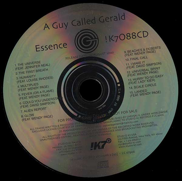 A Guy Called Gerald - Essence - French Promo CD - Back