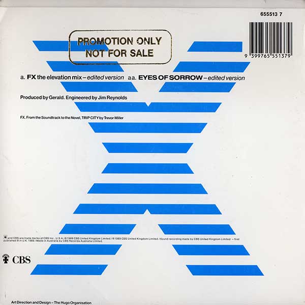 ![]() A Guy Called Gerald - FX (the elevation mix) [Maxi Singles] UK 1989 12" Single; Columbia: XPR 1473 [White Label Promo] Credits: Written by Gerald. FX taken from the soundtrack to the novel, "Trip City", by Trevor Miller. ![]() A Guy Called Gerald - FX (the elevation mix) - Stencil Sleeve - UK 12" Single - Back
