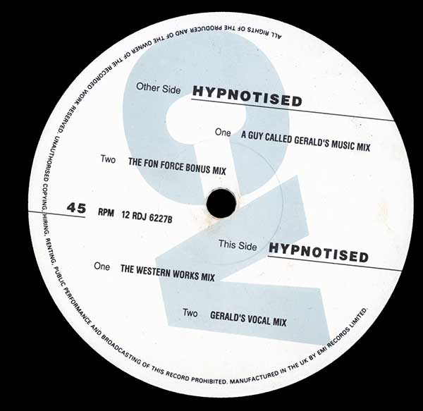 ![]() Cabaret Voltaire - Hypnotised (7" Single) UK 1989 7" Single; EMI: R 6227 [7" Postcard Pack (x6) in Limited Edition of 5000] Credits: Written by Kirk / Mallinder. Comments: Gerald toured with Cabaret Voltaire in June 1990. Sleeve is by 'The Designers Republic' who also designed many of the early Orb sleeves. ![]() Cabaret Voltaire - Hypnotised - UK 7" Single - Credits