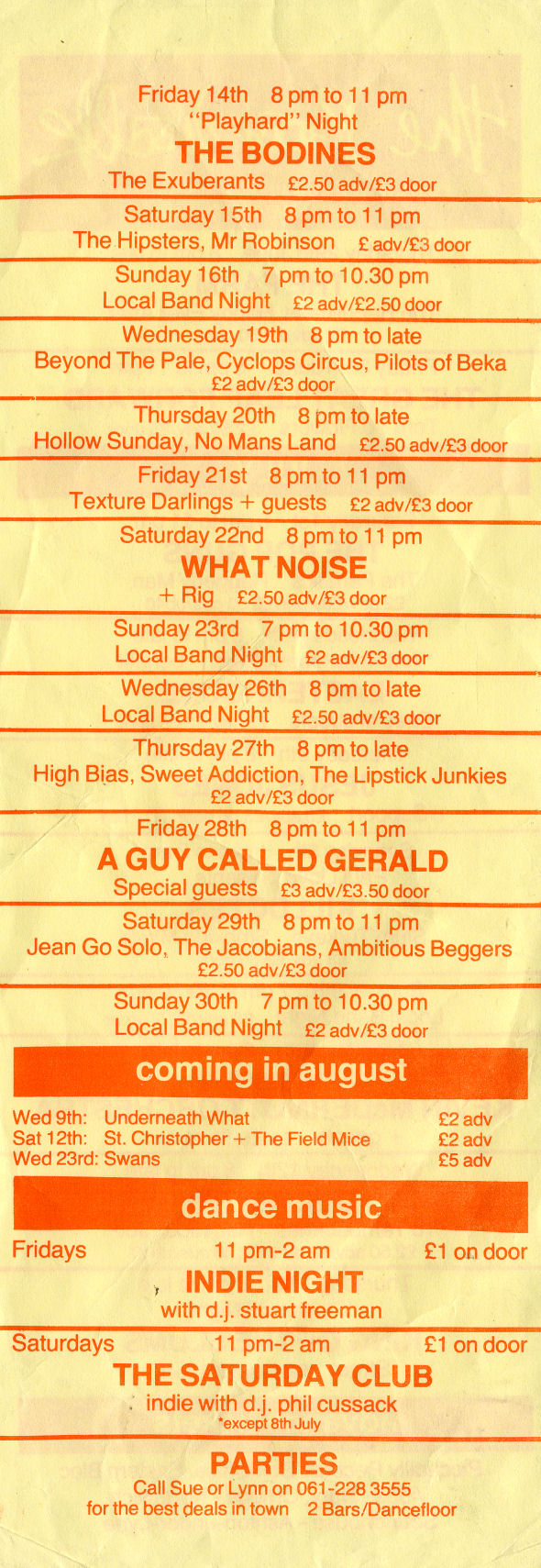 (As advertised in NME, 10th June 1989) From the (old) Riverside webpage: June 13th RIVERSIDE'S 4th BIRTHDAY with A GUY CALLED GERALD |