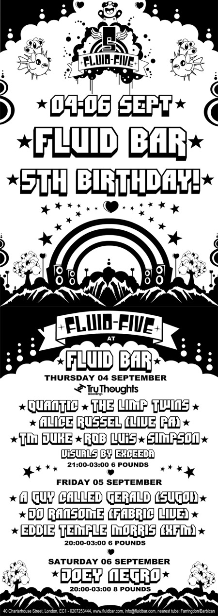 | 5 September: Fluid Five, Fluid Bar, Farringdon, London, England |