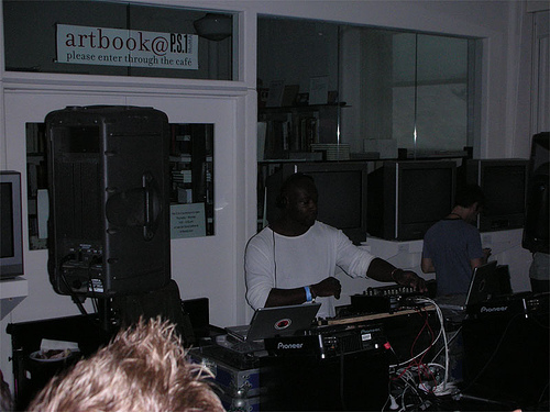 Details30 Sep: Black Market Records, Tech House, Inside, 218 Richmond St. West, Toronto, Canada With resident DJ, Jason Ulrich: "Late Saturday night we ended up at a west-end loft space for Blackmarket's presentation of UK dance pioneer A Guy Called Gerald, aka Gerald Simpson. These days, Simpson's packed away the vinyl and turntables in favour of two laptops running studio software, which allows him to remix and improvise tracks live on the spot as opposed to using the computers to DJ or rework other people's material. Usually, this sort of live electronic performance is much shorter than a DJ set due to the amount of preparation involved, but in this case he ended up starting relatively early and playing most of the night, longer than many people typically mix records. |