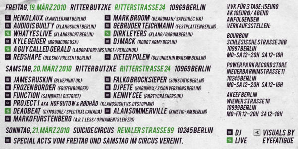 | 19 March: Twisted Elements, Klangsucht, Ritter Butzke, Berlin, Germany |