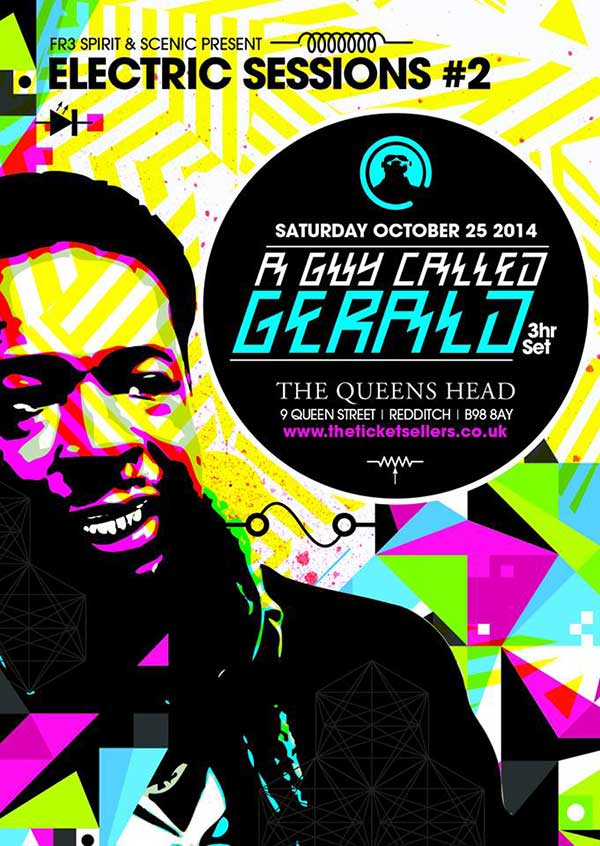 FR3 SPIRIT & SCENIC A GUY CALLED GERALD (3hr set) Support from CON*NATURAL + Local support from + RESIDENTS FR3 SPIRIT On the 25th October 2014 Electric Sessions returns to The Queens Head to bring one of the most influential artists electronic music has to offer. The mighty A GUY CALLED GERALD will be coming to town and gracing us with a 3 hr set!!! More info coming later this week!! |