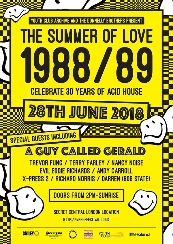 DetailsMERGE will close their series of Summer of Love 1988 events with a festival of 'Acid House'. THE FEEL GOOD INSTITUTE THEY CALL IT ACID: ACID HOUSE: About the artists: The Donnelly Brothers Anthony and Christopher Donnelly are the godfathers of the Manchester rave scene, notorious for organising the era’s biggest and best raves and creating the clothing brand Gio-Goi. YOUTH CLUB Archive The YOUTH CLUB Archive celebrate youth culture through curated events, exhibitions, collaborations and consultancy, and are working towards the goal to open the world’s first Museum of Youth Culture in London. |